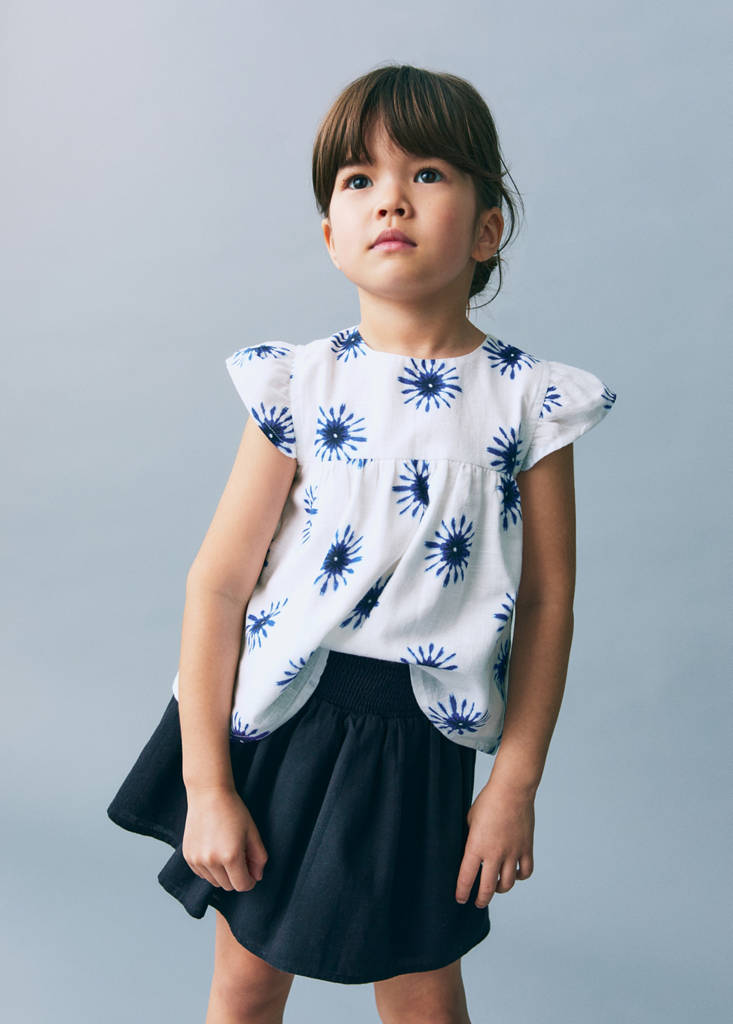 Cotton and linen fabric. Short design. Full skirt. Elastic waistband