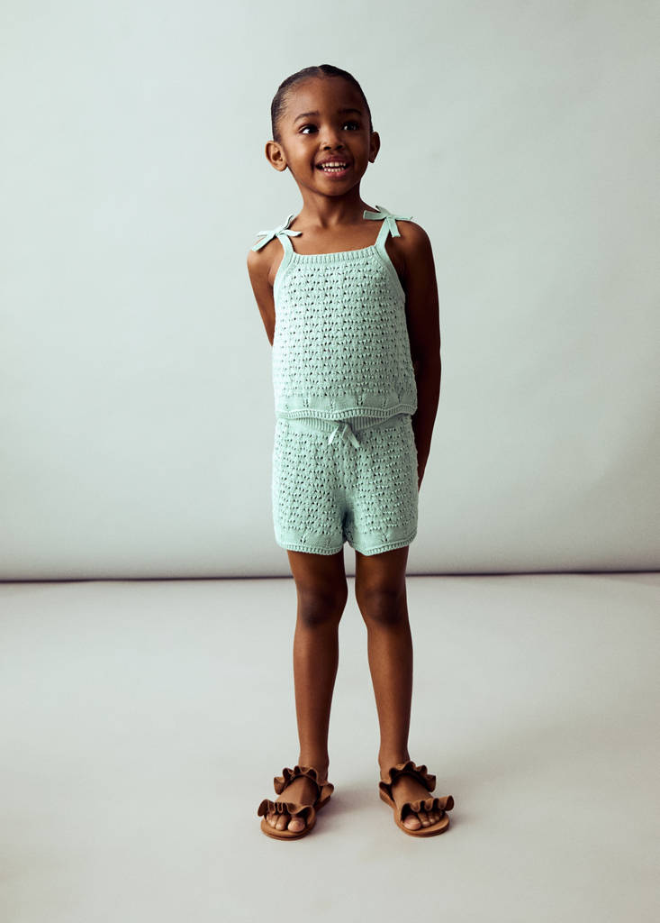 100% cotton fabric. Midpoint. Straight design. Straight neck. Sleeveless. Thin straps with tie closure. Total look
