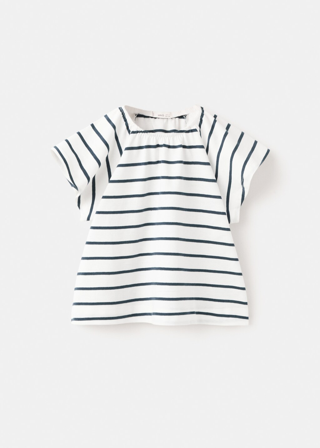 Crafted from 100% cotton fabric, this garment features a striped design and a straight cut. The contrasting round neckline and short sleeves complete the distinctive style