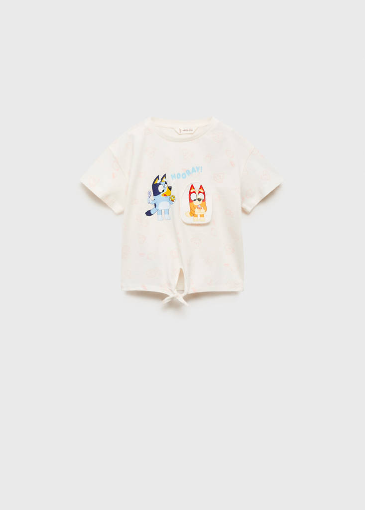100% cotton fabric. Bluey Design. Straight design. Round neck. Short sleeves. Embroidered detail. Printed graphic on the chest. Bow detail at the hem. Licenses