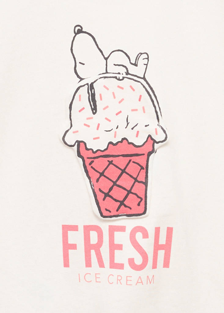 100% Cotton. Straight design. Embossed design. Snoopy design. Knot detail at the front. Round neck. Short sleeves. Kids license
