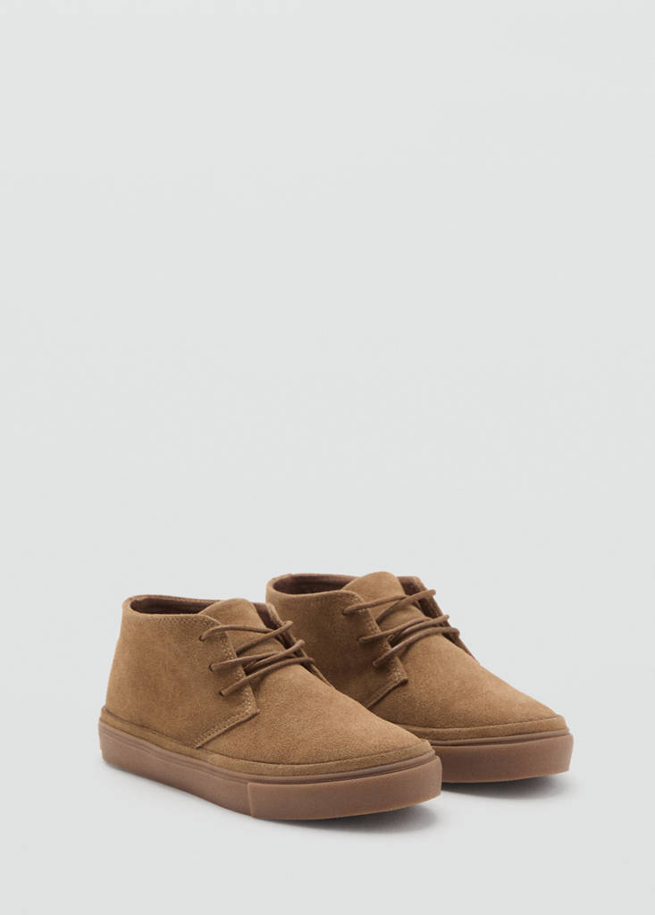 100% bovine leather. Suede. Round toe. Lace-up closure. Rubber sole. Back to school