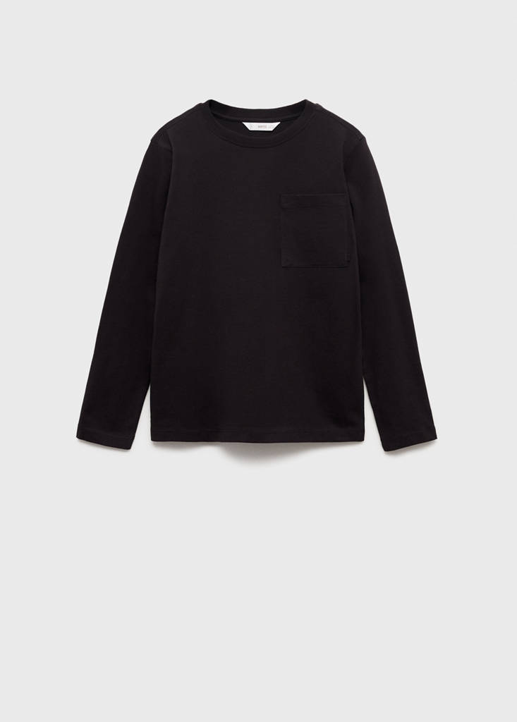 LIGHTWEIGHTLong-sleeved t-shirt with pocketInitial price struck through [US$ 15.99 ]US$ 15.99Current price [US$ 10.99 ]US$ 10.99-31%Select a colourBlackSelect your size5-6 years (45.75 in)Not available. I want it!7-8 years (50.5 in)Not available. I want it!9-10 years (55 in)Not available. I want it!11-12 years (59.75 in)Not available. I want it!13-14 years (64.5 in)Not available. I want it!DimensionsNotify meAdd to WishlistSee lookFree shipping to store100% cotton fabric. Straight design. Ribbed crew neck. Long sleeves. Patch pocket on the frontDetails, composition and careStore availabilityMango StylistAsk about deliveries, returns and moreAssistant