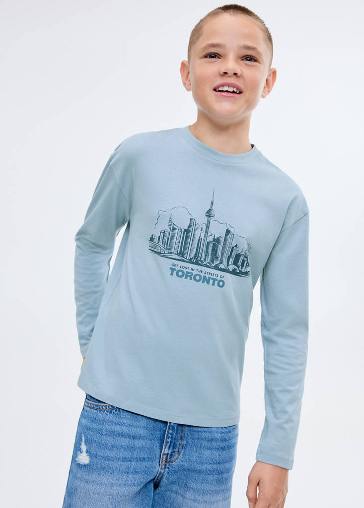 Printed long sleeve t-shirtCurrent price [US$ 15.99 ]US$ 15.99Select a colourBlueSelect your size5-6 years (45.75 in)Not available. I want it!7-8 years (50.5 in)Not available. I want it!9-10 years (55 in)Not available. I want it!11-12 years (59.75 in)Not available. I want it!13-14 years (64.5 in)Not available. I want it!DimensionsNotify meAdd to WishlistSee lookFree shipping to store100% cotton fabric. Straight design. Printed design. Round neck. Long sleevesDetails, composition and careStore availabilityMango StylistAsk about deliveries, returns and moreAssistant