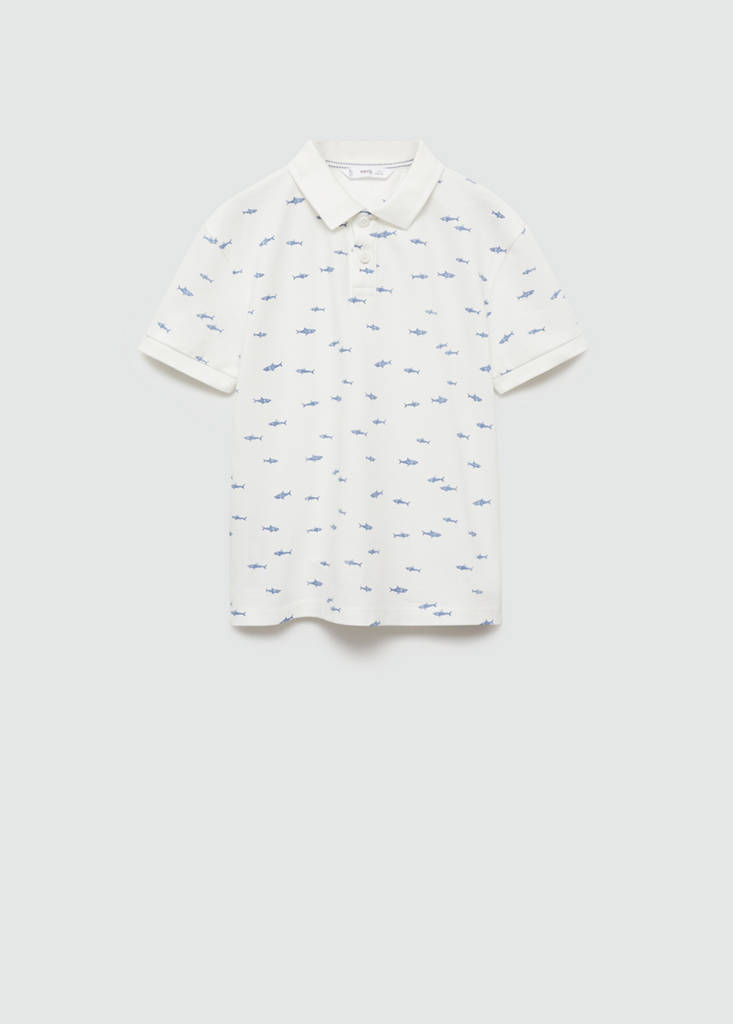 Shark-print polo shirtCurrent price [US$ 17.99 ]US$ 17.99Select a colourOff WhiteSelect your size5-6 years (45.75 in)Not available. I want it!7-8 years (50.5 in)Not available. I want it!9-10 years (55 in)Not available. I want it!11-12 years (59.75 in)Not available. I want it!13-14 years (64.5 in)Not available. I want it!DimensionsNotify meAdd to WishlistSee lookFree shipping to store100% cotton. Straight design. Sharks print. Polo collar with button closure. Short sleevesDetails, composition and careStore availabilityMango StylistAsk about deliveries, returns and moreAssistant