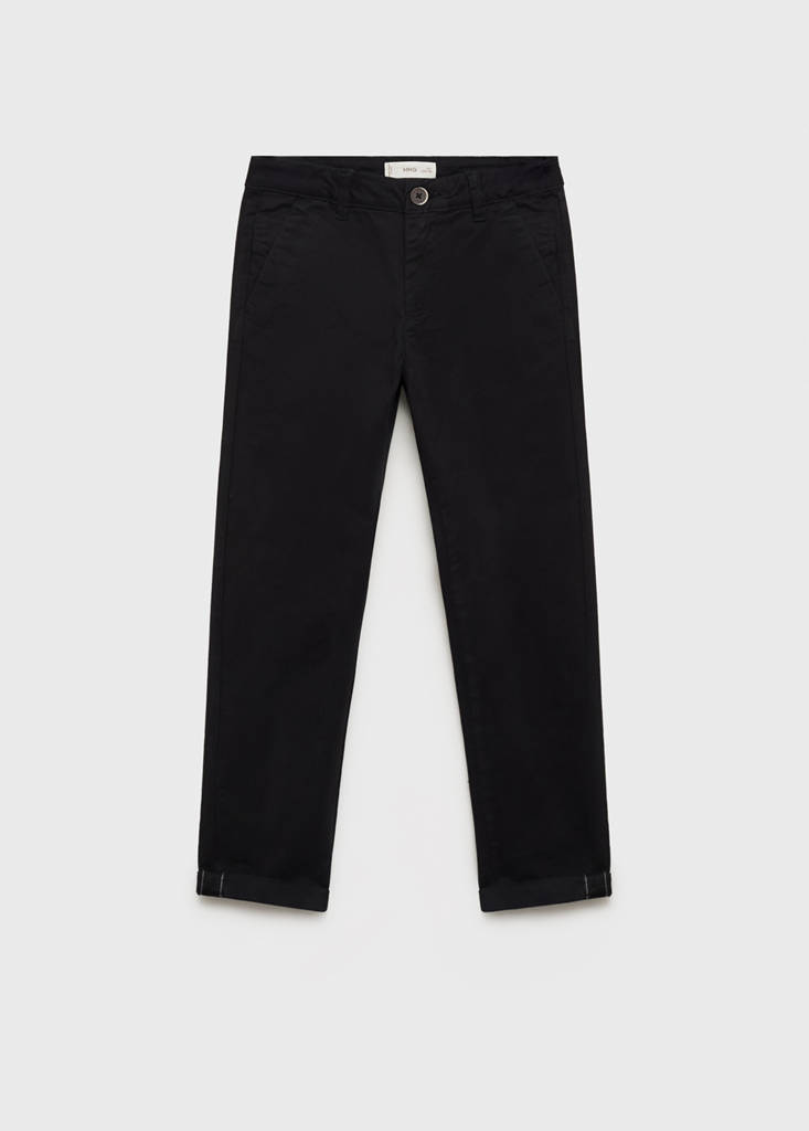 Cotton fabric. Stretch fabric. Long design. Straight design. Plain design. Belt loops. Zip and button closure. Waist with adjustable inner drawstring. Back pockets. Turned-up hem. Halloween Collection