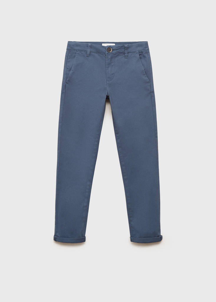 Back to school collection. 100% cotton fabric. Basics Collection. Straight design. Long design. Chinos style. Mid-rise. Slim fit. Two side pockets. Zip and button closure. Party and events collection