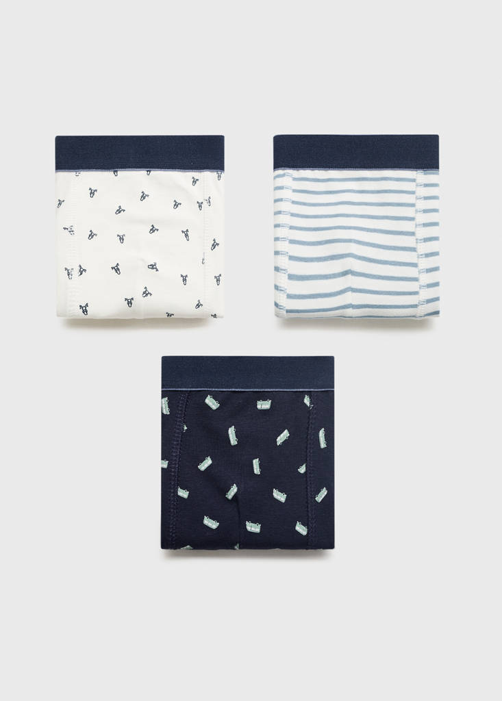 Pack of 3. Cotton fabric. Stretch fabric. Boxer type. Combined print. Elastic waistband. Fabric with cotton. Straight design. Elastic waistband. Printed design