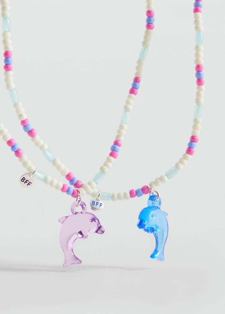 Best Friends. Elastic design. Multicolor design. Combined beads. Dolphin pendant