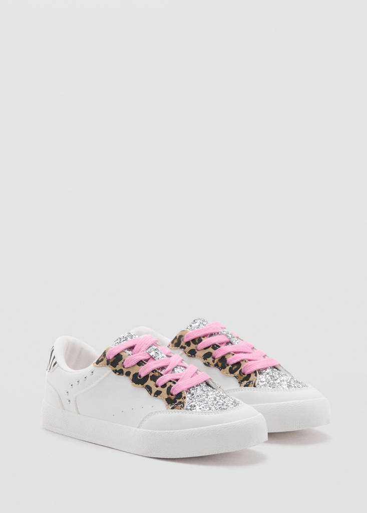 Combined design. Animal print details. Glitter panel. Round toe. Lace-up closure