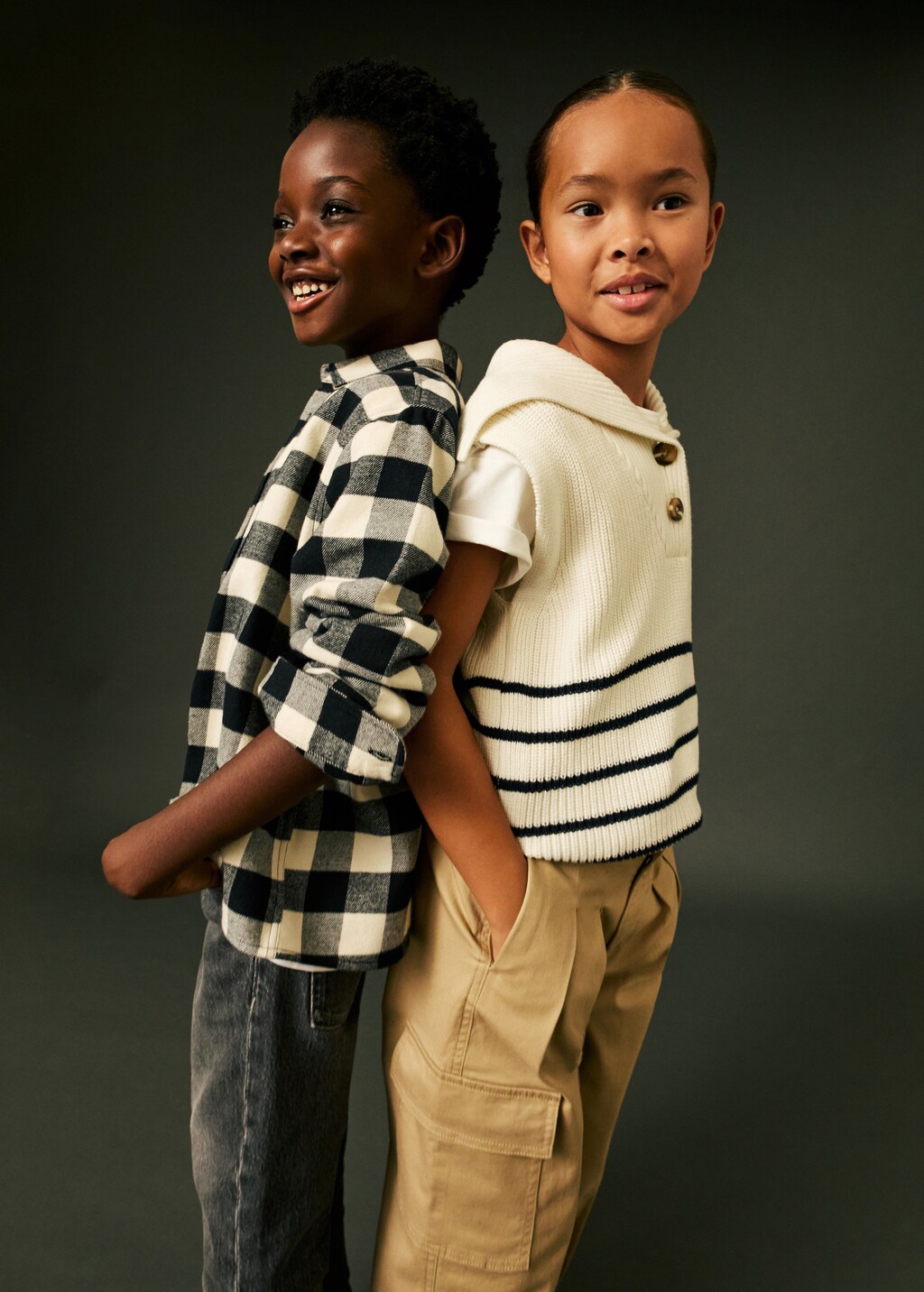 Back to school collection. Fabric with cotton. Straight design. Button closure at the neck. Sleeveless. Striped design.