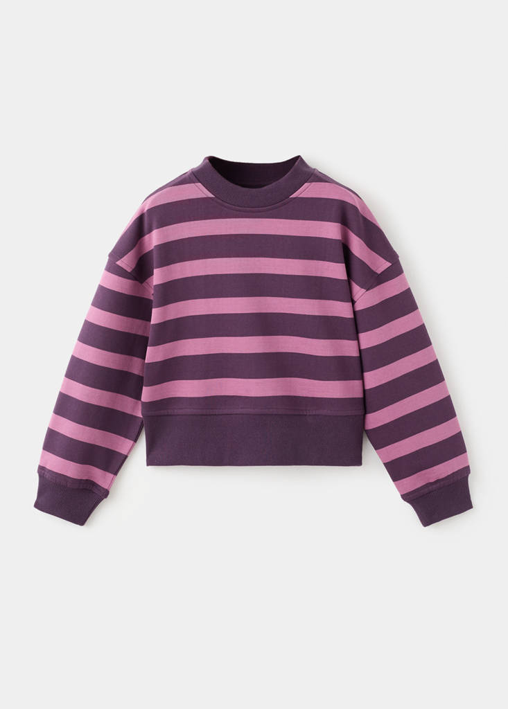 100% cotton fabric. Straight design. Striped design. Round neck. Long sleeves. Ribbed neck, cuffs, and hem