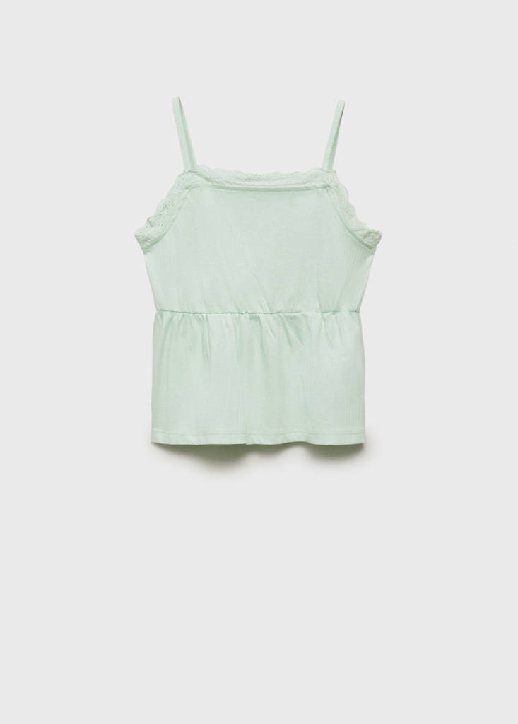 Cotton fabric. Stretch fabric. Textured fabric. Straight design. Straight neck. Thin straps. Swiss embroidered ruffle. Pleats detail. No closure. Promotional product