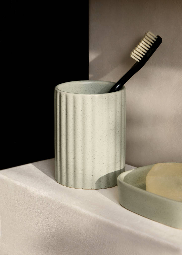 100% stoneware. Size: 6.5x6.5x11 cm. High-quality and durable materials. Elegant design that adds a touch of sophistication and understated luxury to your bathroom. Pairs with more products from the collection