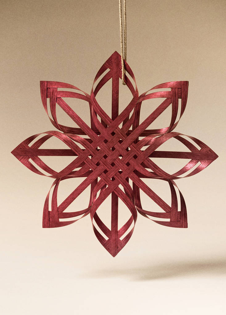 100% bamboo. Diameter: 18 cm. Height: 3 cm. This bamboo star is a decorative ornament that combines elegance and simplicity ideal for modern and festive settings. The star is crafted from sheets that mimic bamboo, perfect for creating a warm, cosy and natural ambience with a refined festive touch. Available in three colours. Christmas Collection