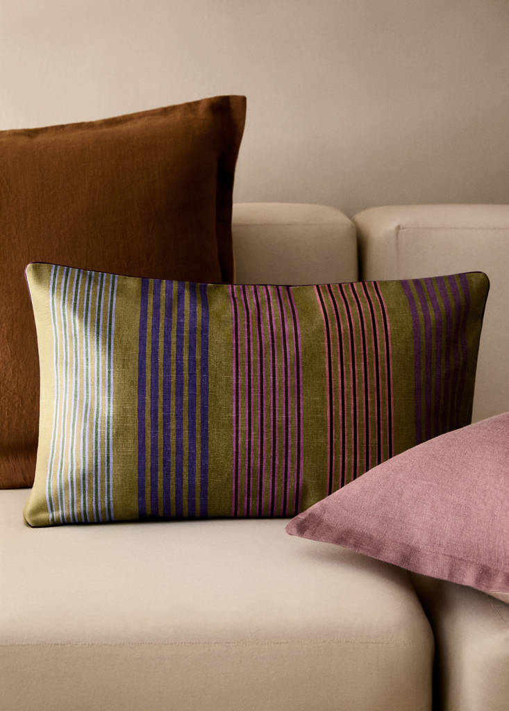 Size: 40x60cm. Multicolor stripes print. Contrast trim. Add a colorful and original touch to any space. No filling. Invisible back zip fastening. Available in various colors. Available in various sizes