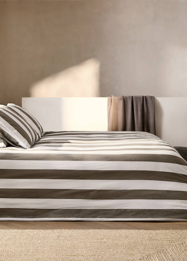 90cm Bed. Size: 59x87in. 100% Cotton. 200 thread count. Striped pattern. Fresh, soft, durable, breathable, versatile. Two-tone design. Ideal for those looking to combine style and comfort in their resting space. Adds a sophisticated and cozy touch. Pairs with more products from the collection