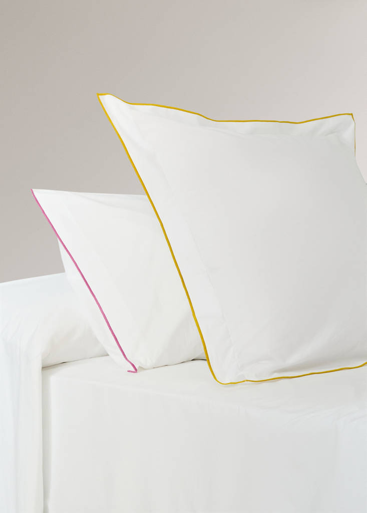 Two 200-thread-count cotton percale pillowcases with contrasting overlock 60 x 60 cm