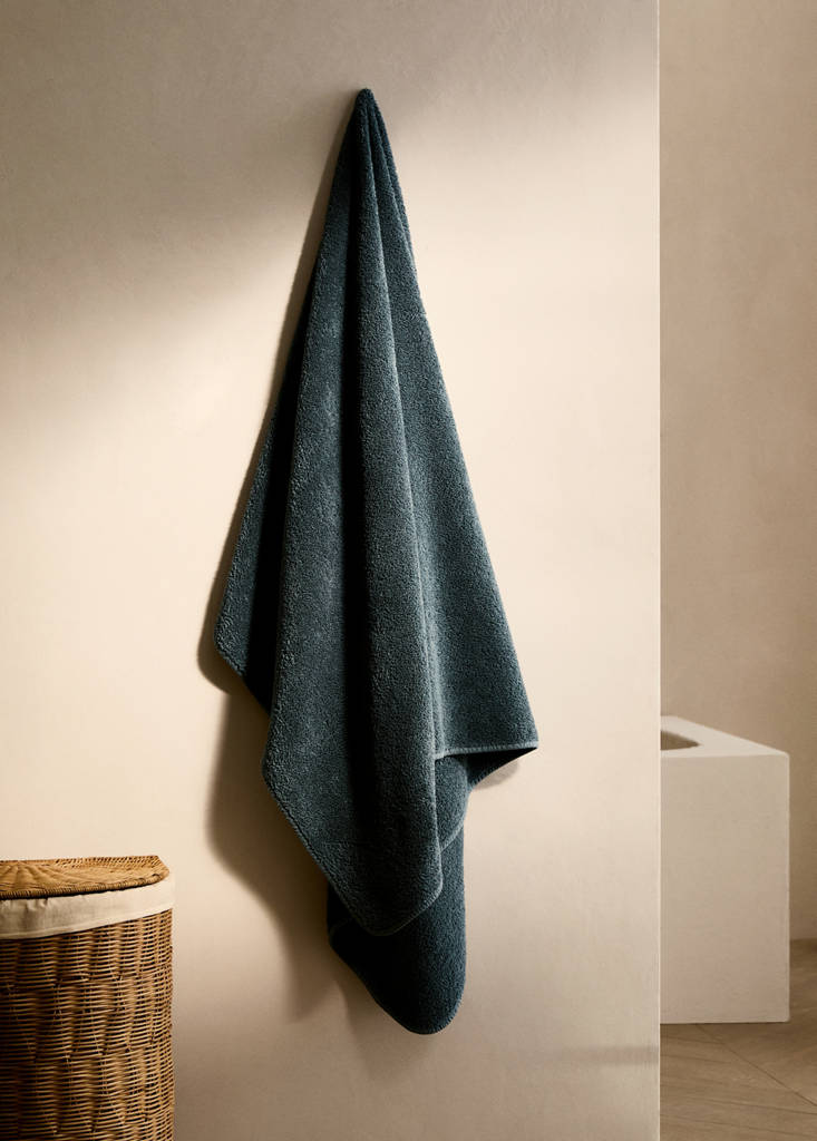 Size: 90x150cm. 100% terry cotton. Grammage: 700 gr/m2. High absorption. Garment-dyed cotton fabric. Its modern design enhances any bathroom, combining softness and high absorbency. Coordinates with more items from the collection. Available in various colors. Washing this item separately is recommended