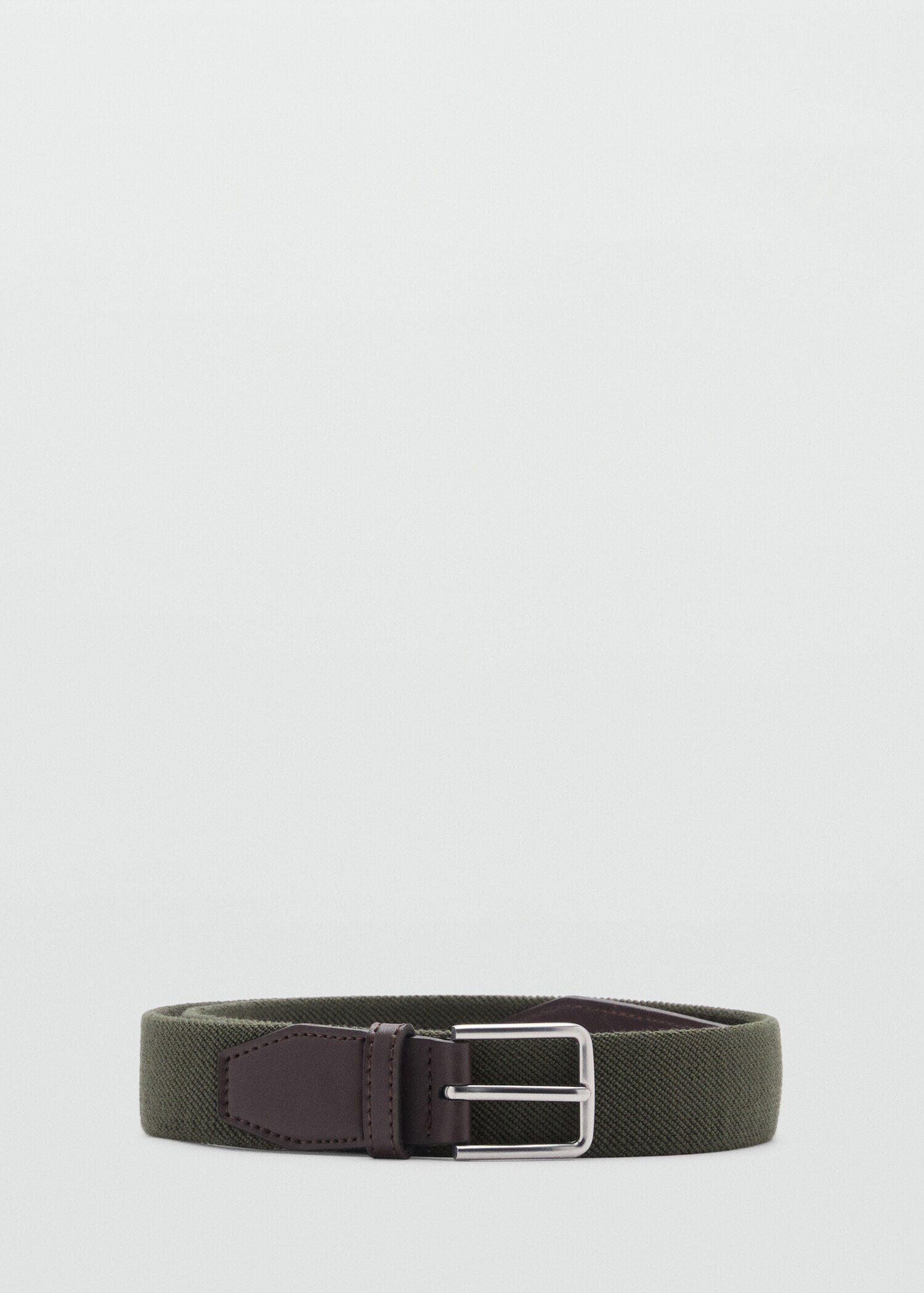 Leather-appliqué elastic beltInitial price struck through [US$ 49.99 ]US$ 49.99Current price [US$ 29.99 ]US$ 29.99-40%Select a colourKhakiSelect your sizeS (EUR 80)Not available. I want it!M (EUR 90)Not available. I want it!L (EUR 100)Not available. I want it!XL (EUR 110)Not available. I want it!Size guideNotify meAdd to WishlistFree shipping to storeSee availability in storeDescriptionStretch fabric. Nappa leather trims. Square metallic buckle close. Perforation for free size adjustment in MANGO stores.See detailsSize guideShare