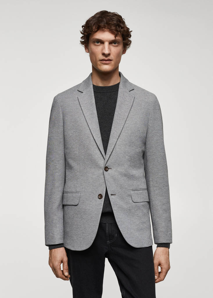 The color black is exclusive online. Slim fit. Cotton fabric. Cotton twill structure. Lightweight fabric. Notched lapel collar. Two patch pockets on the front. Long sleeves with buttoned cuffs. Straight hem. Double back slit. Interior pocket with button closure. Inner lining at the front. Front button closure