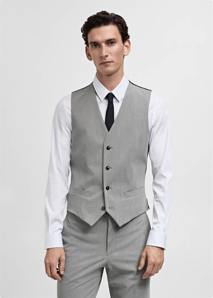 Super slim fit. Comfort Stretch: Stretch fabric that provides extra comfort. V-neck. Front closure. Two front welt pockets. Adjustable buckle on the back. Sleeveless. Interior pocket. Stretch fabric providing maximum comfort and freedom of movement. Front button closure. Inner lining. Buckle adjustment at the back. Inner lining. Tailoring collection. Comfort: Horizontal and vertical stretch fabric for added comfort. Two welt pockets on the front
