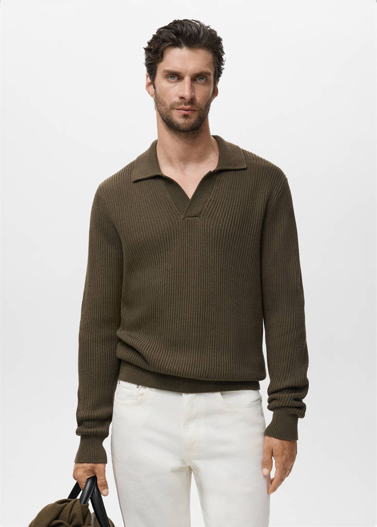 Casper Ruud x Mango Collection. 100% cotton fabric. Straight silhouette. Polo shirt with buttonless collar. Long sleeves with elastic cuffs. Ribbed collar and cuffs. Straight hem