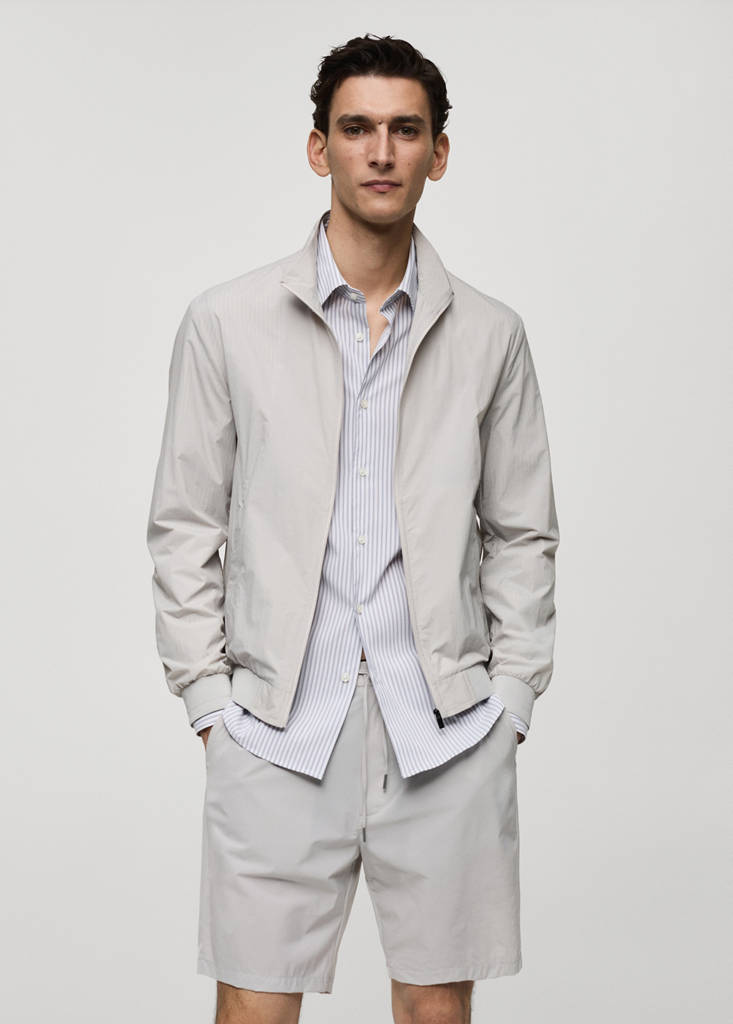 Performance Collection. Water-repellent: The durable finish of this garment protects against light rain, repelling contact with water and raindrops. Thermoregulator: This fabric offers optimal breathability to keep you at a stable temperature. Funnel neck. Front zipper closure. Long sleeves with elastic cuffs. Elastic hem. Two welt pockets on the front. Ribbed finishes on sleeve and hem