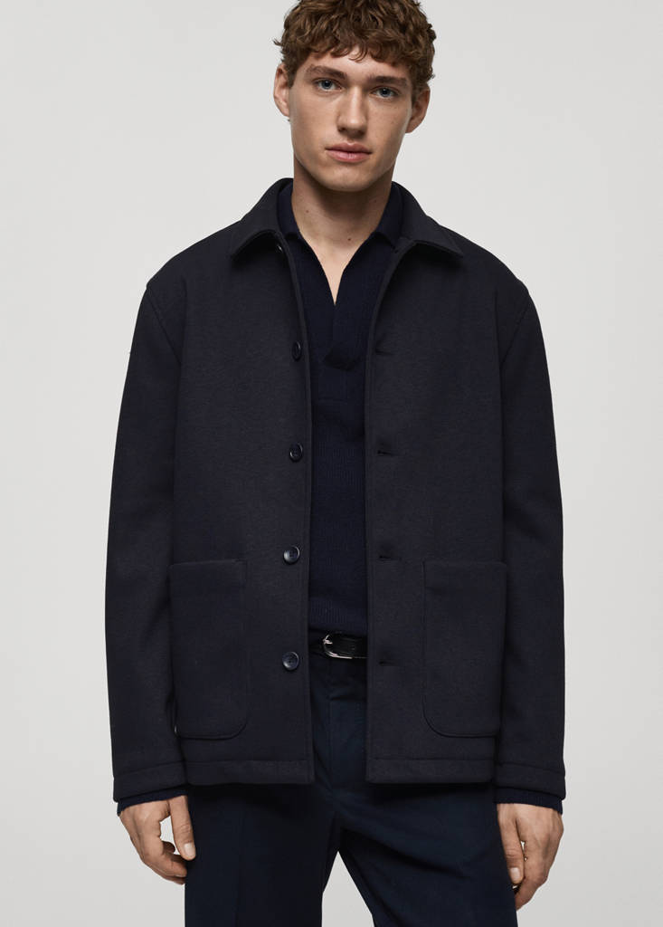 Standard design. Front closure. Long sleeves. Shirt collar. Button closure. Two patch pockets on the front. Regular fit