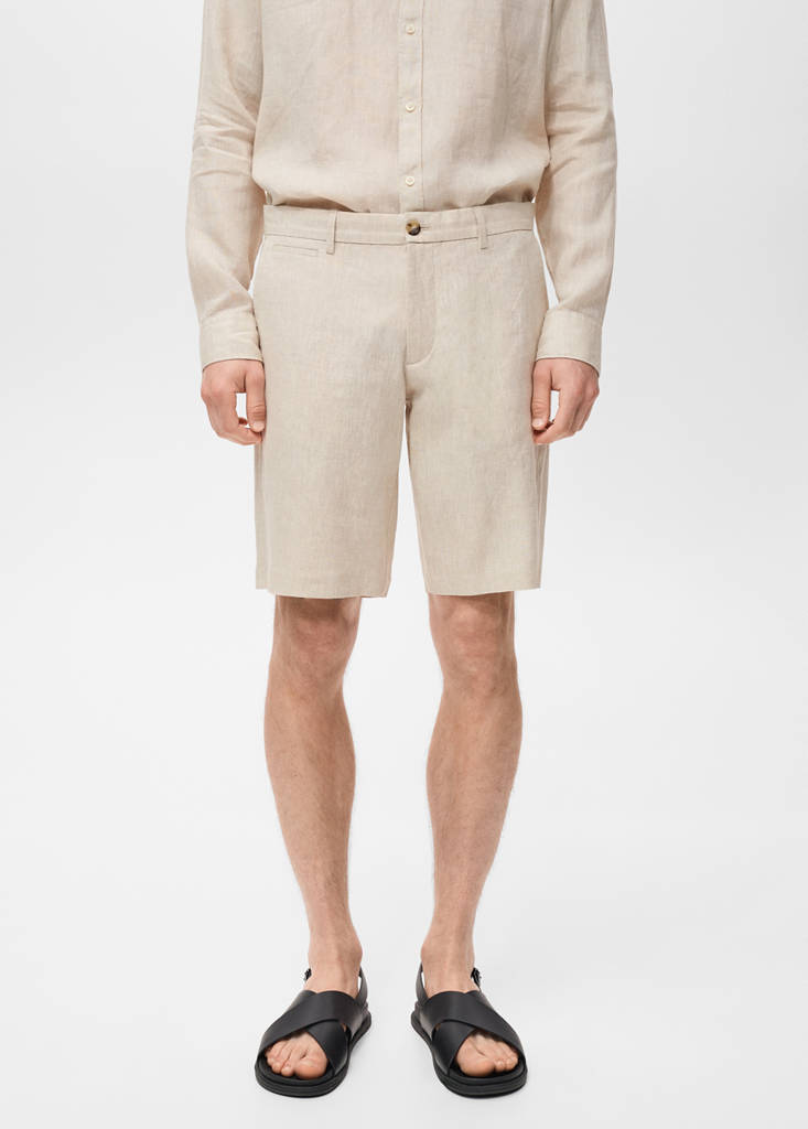 Crafted from 100% linen fabric, this tailored design features a regular waist and a slim-fit cut. It includes belt loops, a double-button fastening and a zipper, as well as front and back pockets. With a SMART ETHEREAL theme, the model is 190 cm tall and is wearing a size 42