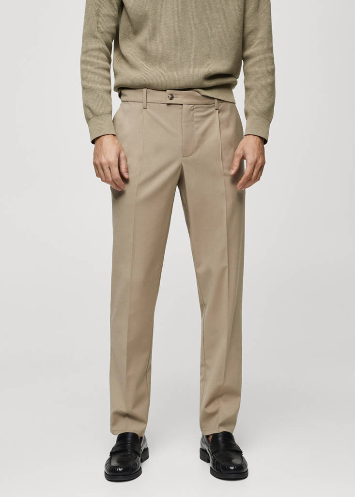 ESSENTIALS: Made to last. Slim fit. Wool mix fabric. Double button and zip closure. Detail of front and rear calipers. Belt loops. Two front pockets. Two welt pockets with button at the back. Straight hem