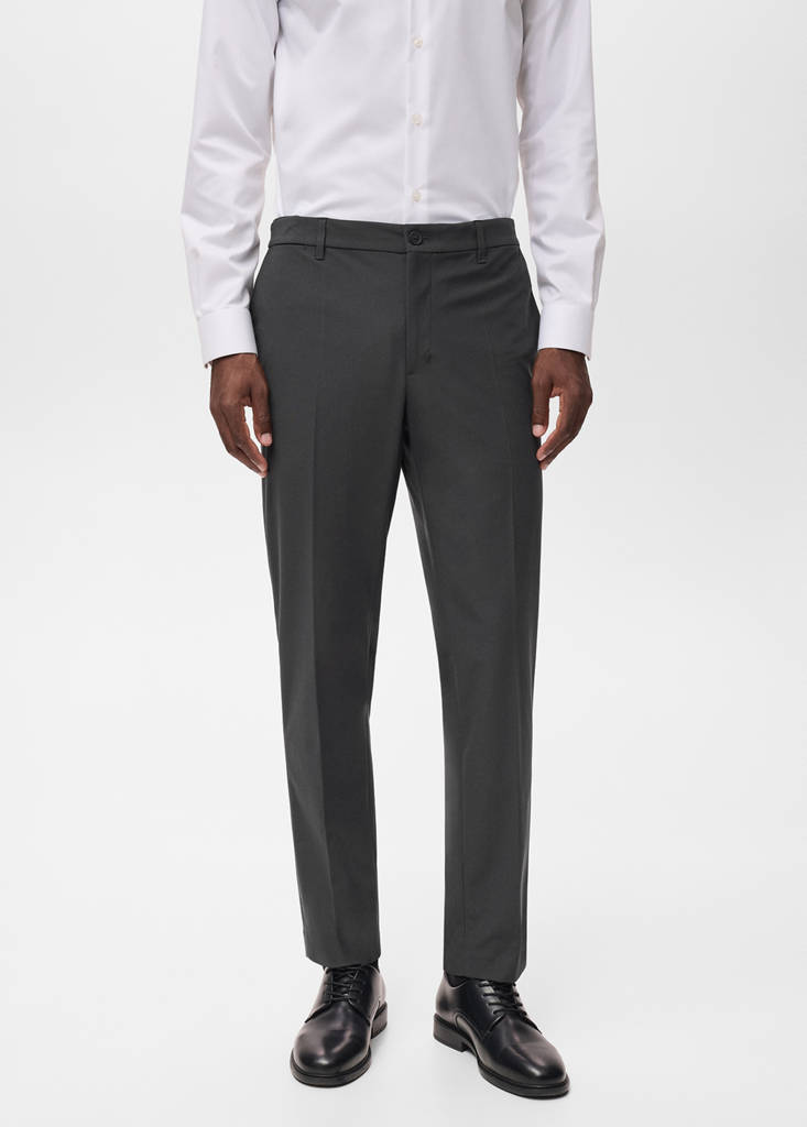 THERMOLITE®: fabric that, thanks to its fiber technology, offers thermal insulation and breathability. Slim fit. Belt loops. Detail of front and rear calipers. Two side pockets. Two welt pockets at the back. Double-breasted button and zipper front closure