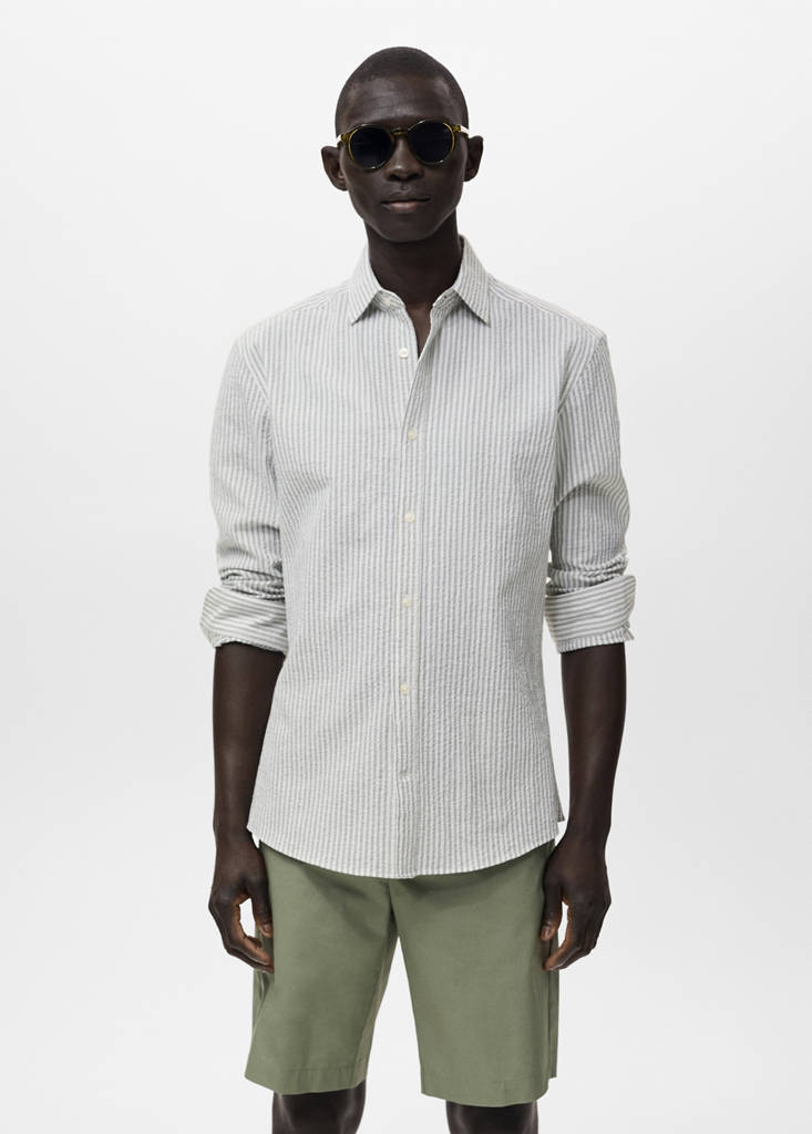 Regular-fit stripe-textured shirtCurrent price [US$ 79.99 ]US$ 79.99Select a colourDark GreenThe model is wearing size M and is 6'1" tall.Select your sizeSNot available. I want it!MNot available. I want it!LNot available. I want it!XLNot available. I want it!DimensionsNotify meAdd to WishlistSee lookFree shipping to storeCotton fabric. Regular fit. Striped print. Shirt collar. Long sleeves with buttoned cuffs. Front button closureDetails, composition and careStore availabilityMango StylistAsk about deliveries, returns and moreAssistant