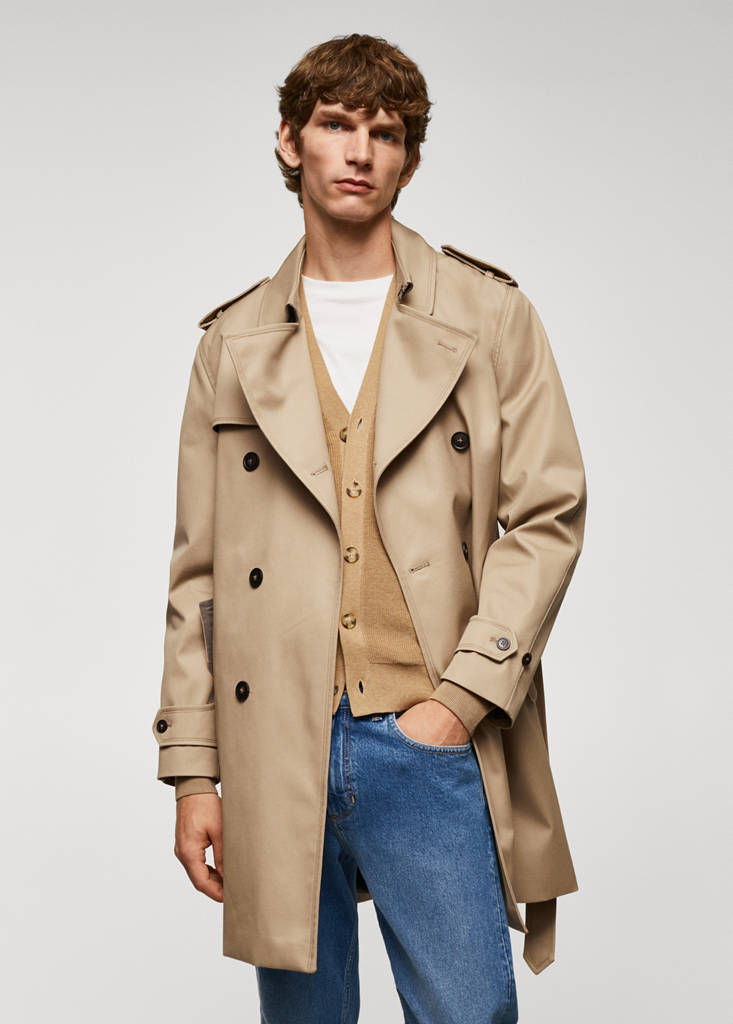 ESSENTIALS: Made to last. Basics Collection. Waterproof fabric. Medium design. Notch lapels and buttonhole. Metal hook closure on the neck. Design with double-breasted front closure. Inner counterbutton for better grip of the outer button. Decorative shoulder straps. Long sleeves with adjustable tabs. Twin buttoned flap pockets at front. Removable belt at the waist. Inner lining. Interior pocket. Back vent at the hem. The green color is exclusive online. Water-repellent: The durable finish of this garment protects against light rain, repelling contact with water and raindrops