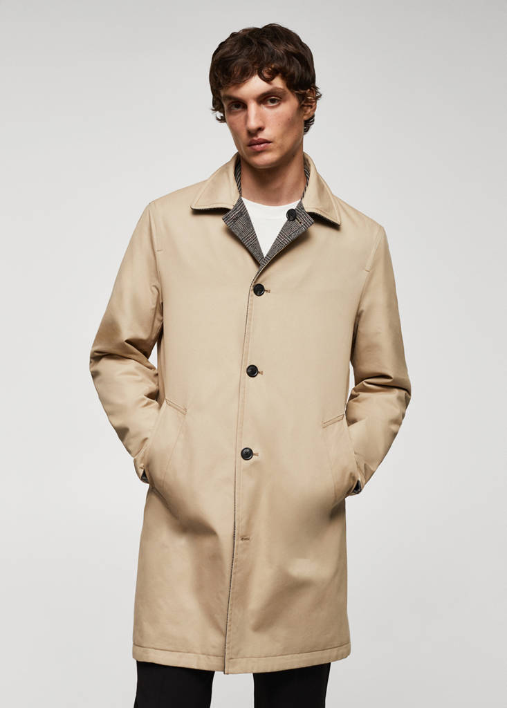 Regular fit. Reversible design. Waterproof design. Recycled wool and recycled polyester-blend fabric. Tartan print. Long sleeves. Back vent at the hem. Water-repellent: The durable finish of this garment protects against light rain, repelling contact with water and raindrops. Front button closure. Classic collar