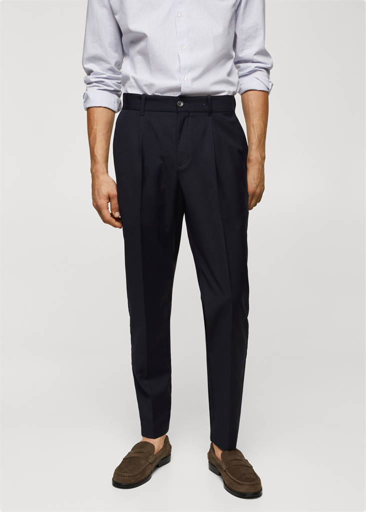 ESSENTIALS: Made to last. Virgin wool blend fabric. Wide design. Slim fit. Zip and button closure. Detail of front and rear calipers. Two front pockets. Two pockets with button on the back