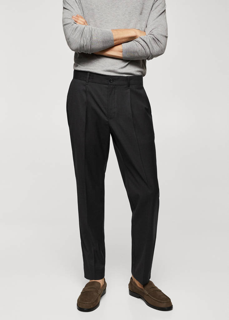 ESSENTIALS: Made to last. Virgin wool blend fabric. Wide design. Slim fit. Zip and button closure. Detail of front and rear calipers. Two front pockets. Two pockets with button on the back