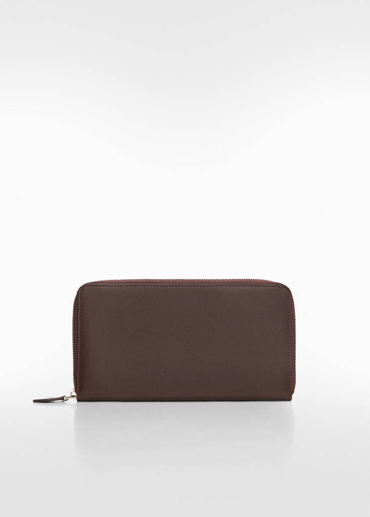 Includes RFID protection against contactless theft. Nappa faux-leather. Large size. Made of recycled materials. Main compartment with zipper closure. Multiple card slots. Central compartment for bills