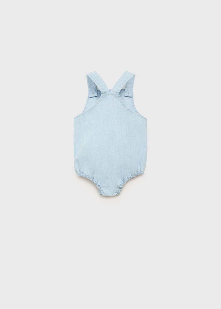 100% cotton fabric. Denim design. Straight design. Short design. Straight neckline. Straps with button closure. Side button closure. Hem slit with button closure