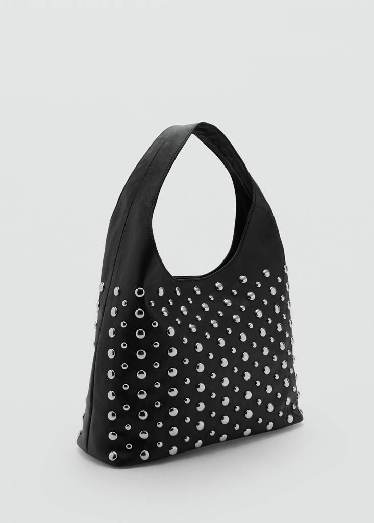 Leather effect. Leather-effect fabric. Sack design. Stud embellishment. Shoulder strap. One press stud fastening