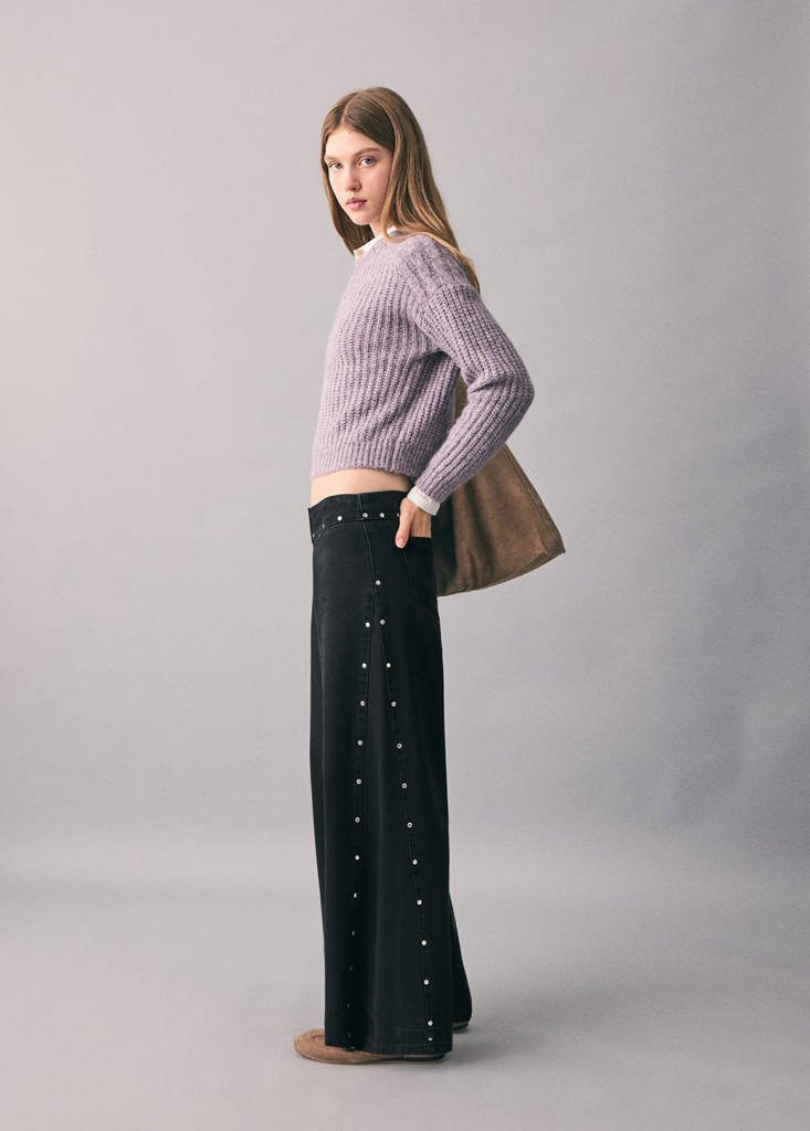 Wide leg jeans with studsCurrent price [US$ 79.99 ]US$ 79.99Select a colourBlack denimSelect your sizeXXSNot available. I want it!XSNot available. I want it!SNot available. I want it!MNot available. I want it!LNot available. I want it!XLNot available. I want it!DimensionsNotify meAdd to WishlistSee lookFree shipping to store100% cotton fabric. Long design. Wide-leg design. Regular Waist Rise. Zipper closure. Decorative studsDetails, composition and careStore availabilityMango StylistAsk about deliveries, returns and moreAssistant