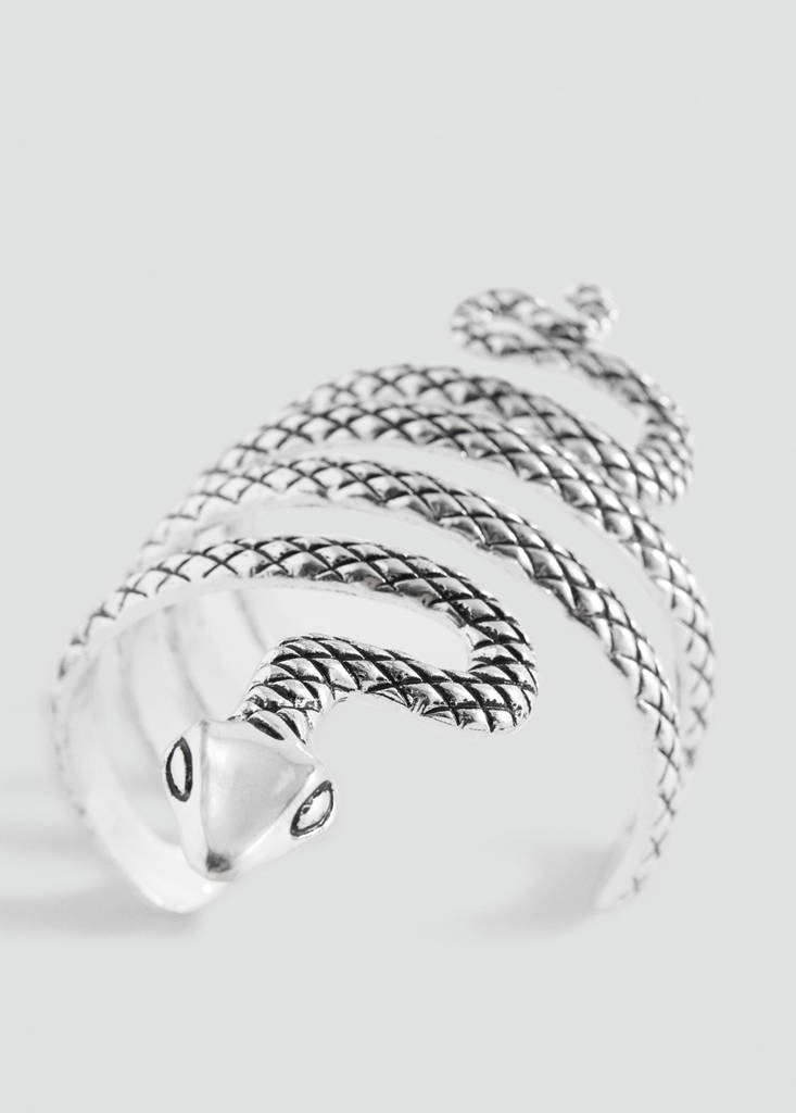 Snake-effect cuffCurrent price [US$ 19.99 ]US$ 19.99Select a colourSilverSelect your sizeOne sizeNot available. I want it!Notify meAdd to WishlistSee lookFree shipping to storeSnake design. Metallic finish. Rigid design. Adjustable closureDetails, composition and careStore availabilityMango StylistAsk about deliveries, returns and moreAssistant