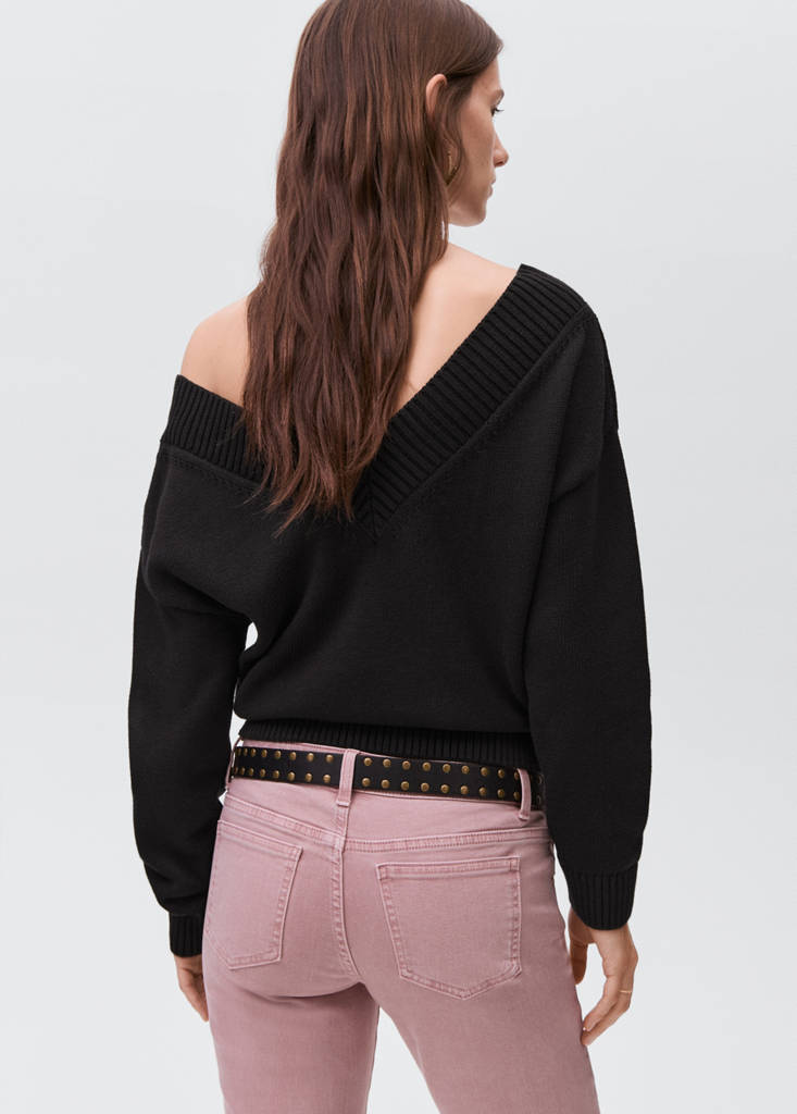 V-neck knit sweaterCurrent price [US$ 49.99 ]US$ 49.99Select a colourBlackSelect your sizeXXSNot available. I want it!XSNot available. I want it!SNot available. I want it!MNot available. I want it!LNot available. I want it!DimensionsNotify meAdd to WishlistSee lookFree shipping to store100% cotton fabric. Knit fabric. Oversize design. V-neck. Thin straps. Long sleeves. Ribbed neck, cuffs, and hemDetails, composition and careStore availabilityMango StylistAsk about deliveries, returns and moreAssistant