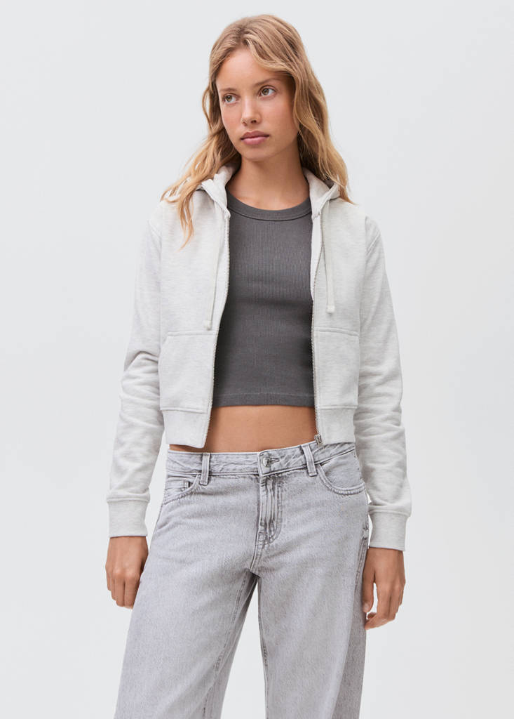 Zipped hoodieCurrent price [US$ 59.99 ]US$ 59.99Select a colourLight Heather GreySelect your sizeXXSNot available. I want it!XSNot available. I want it!SNot available. I want it!MNot available. I want it!LNot available. I want it!DimensionsNotify meAdd to WishlistSee lookFree shipping to store100% cotton fabric. Straight design. Collar lapel hood. Drawstring hood. Long sleeves. Front zipper closure. Two side pockets. Total lookDetails, composition and careStore availabilityMango StylistAsk about deliveries, returns and moreAssistant