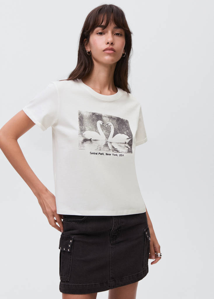 Cotton t-shirt with swan pattern