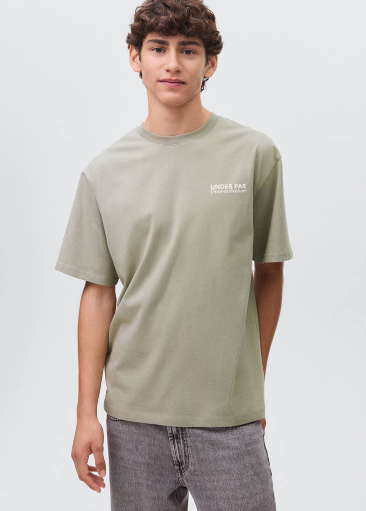 Crafted from cotton fabric, this garment features a straight design with a print and text on the front. The round neckline and short sleeves complete its casual and versatile style