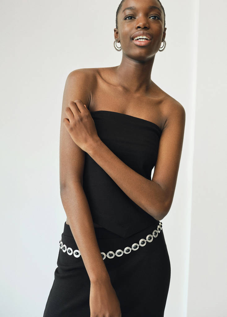 V-neck bandana topCurrent price [US$ 19.99 ]US$ 19.99Select a colourBlackSelect your sizeXXSNot available. I want it!XSNot available. I want it!SNot available. I want it!MNot available. I want it!LNot available. I want it!Notify meAdd to WishlistSee lookFree shipping to store100% cotton fabric. Straight design. Strapless. Pointed hem. No closureDetails, composition and careStore availabilityMango StylistAsk about deliveries, returns and moreAssistant