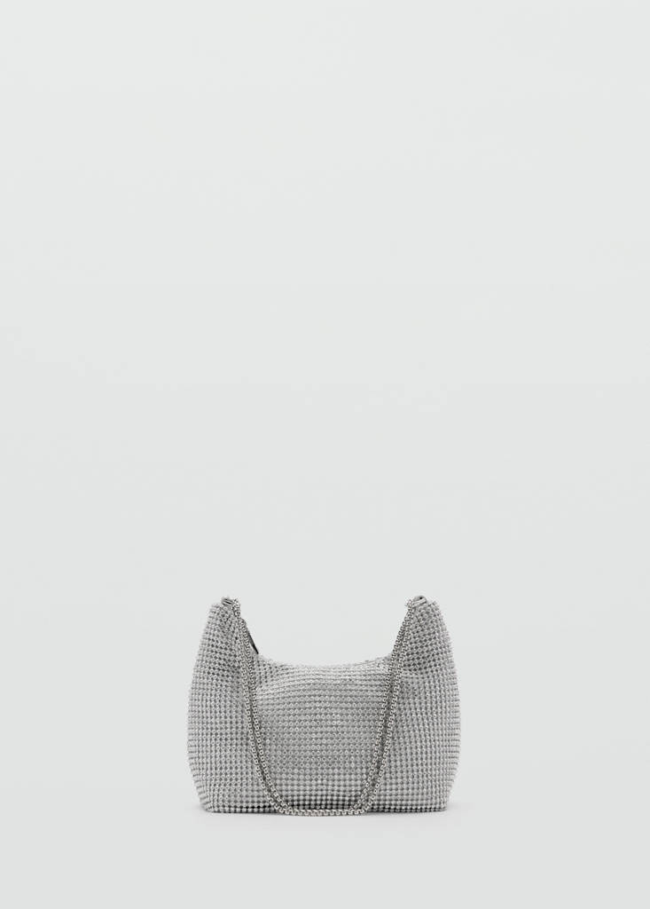 Chain bag with crystalsCurrent price [US$ 69.99 ]US$ 69.99Select a colourSilverSelect your sizeOne sizeNot available. I want it!Notify meAdd to WishlistSee lookFree shipping to storeSmall size. Faceted crystals. Chain handle. Party, ceremony, and communion collection7.48x5.91x3.15 in (Length x Height x Width)Details, composition and careStore availabilityMango StylistAsk about deliveries, returns and moreAssistant