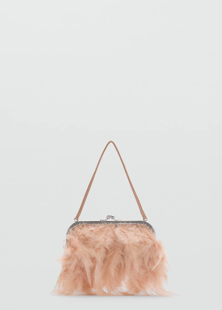 Short strap. Inner lining. Party, ceremony, and communion collection. Feather detail. Small size. Metal snap closure