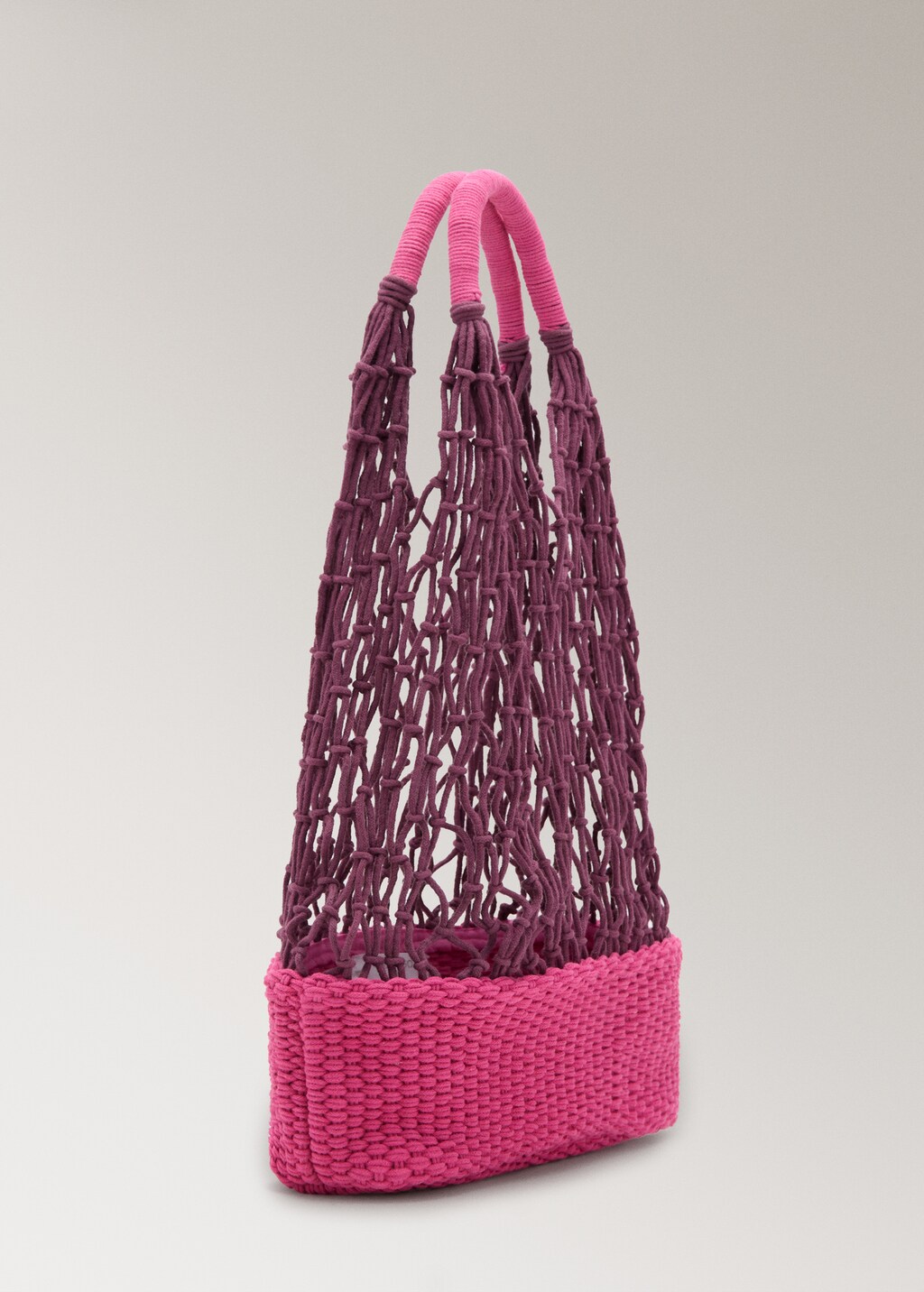 Cotton mesh shoulder bagCurrent price [US$ 69.99 ]US$ 69.99Select a colourWineSelect your sizeOne sizeEstimated delivery in 12 business daysAddAdd to your wishlistSee lookFree shipping to store100% Cotton. Mesh fabric. Combined design. Double handleDetails, composition and careStore availabilityMango StylistAsk about deliveries, returns and moreAssistant